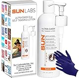 - CELEBRITIES LOVE IT, DOCTORS RECOMMEND IT Sun Laboratories Sunless Tanning lotions (also referred to as self-tanners) require no exposure to the sun. Growing evidence shows the multitude of damage sun exposure can do both short-term and long-term. With the self tanner for pale, light, or medium skinned people, you need not worry about negative side effects. This quick tan self tanner ensures a rich glow that is natural and safe.