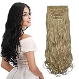 REECHO 24″ Curly Wavy 4 Pieces Set Clip in on Hair Extensions Bleach Blonde