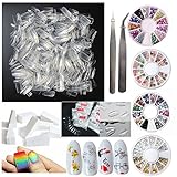 DIY Glitter Nail Rhinestones Decorations Dotting Tool Water Transfer Sticker Decal Nail Line Tape Striping Nails Sanding Buffing File Beauty Accessories Nail Art Set Kit (Style 1)