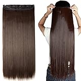 S-noilite Trendy 24″/26″ Straight Curly 3/4 Full Head One Piece 5clips Clip in Hair Extensions Long Poplar Style for Xmas Gifts 22colors (26″ – Straight, medium brown)