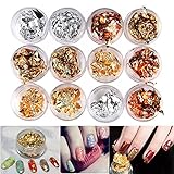 MEILINDS 12 Boxs Nail Art Foil Sticker Gold Silver Acrylic Paillette Flake Chip DIY Decals Decoration
